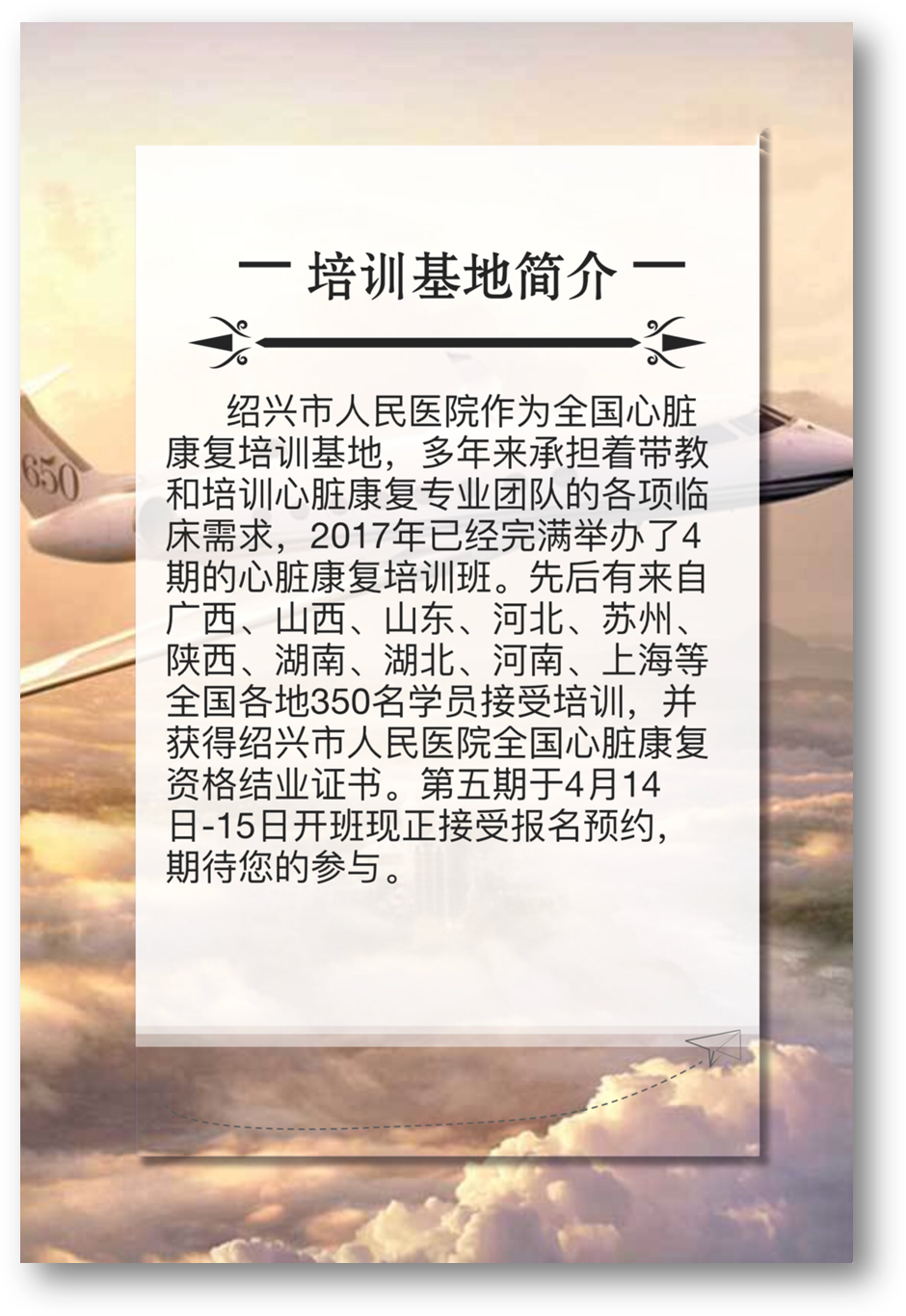 第五期 紹興市人民醫(yī)院全國心臟康復(fù)資格培訓(xùn)班招生通知